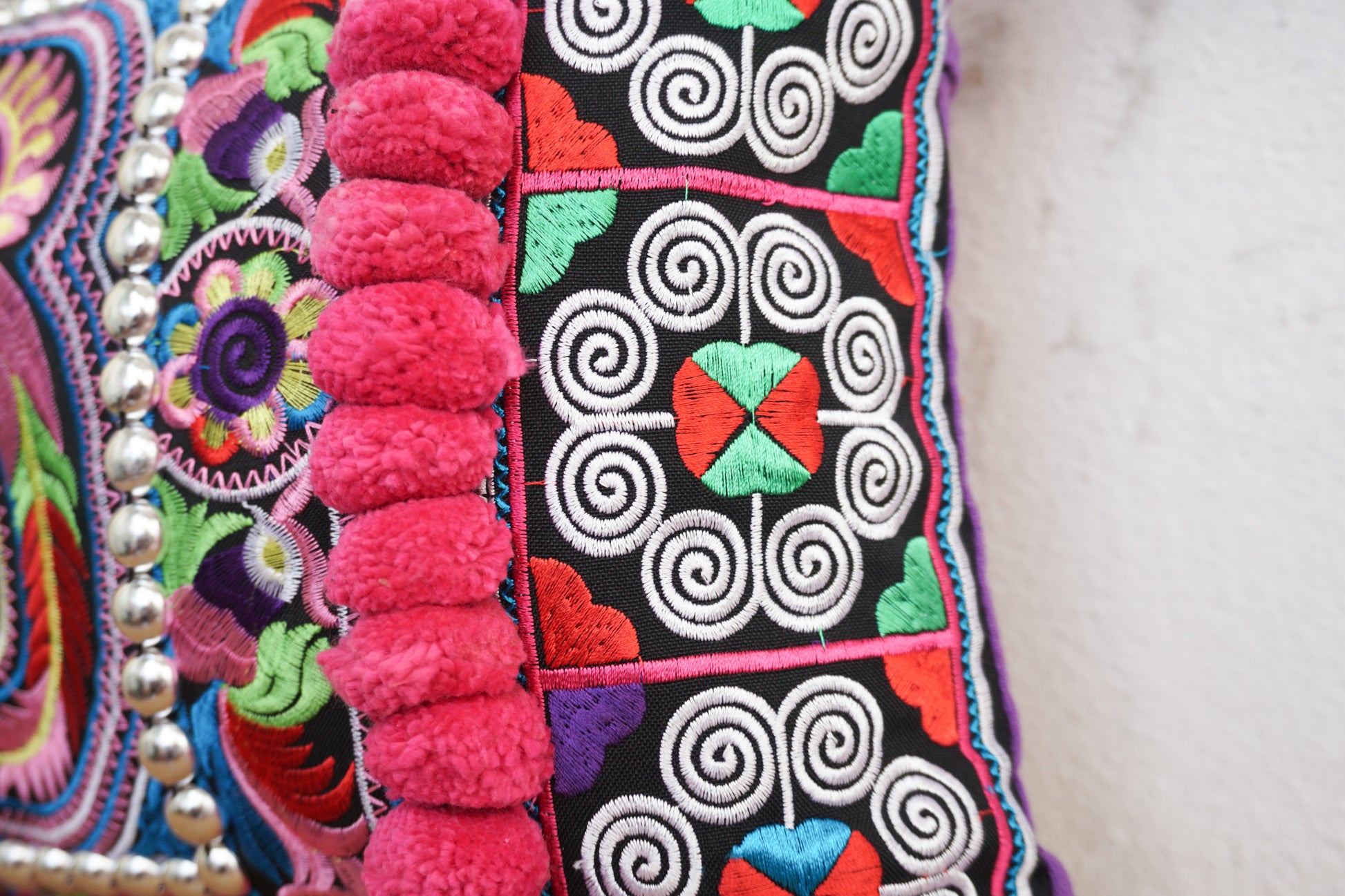 This beautiful cushion is made with an amazing piece of fabric woven by the HMONG hill tribes of Lanna Country (Northern Thailand).