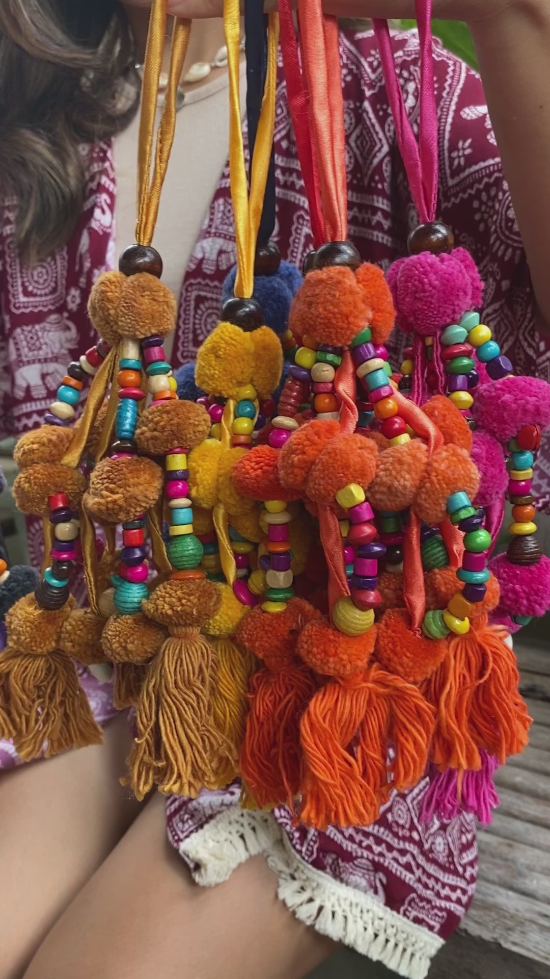 - Great to decorate your purse, tote or backpack with this trendy pom pom tassel bag charm